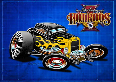 Here you will find original drawings and amazing cartoons of Hot Rods and Muscle cars that you will love to collect and show off to all your friends.